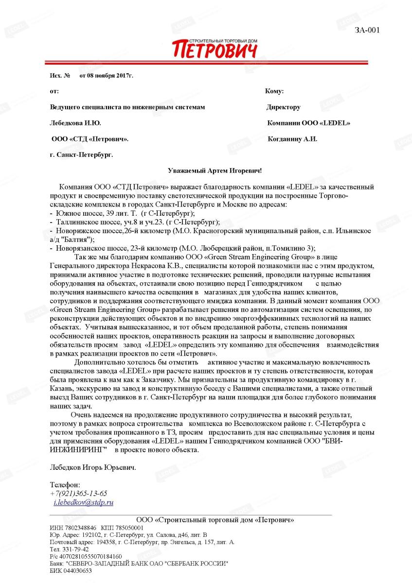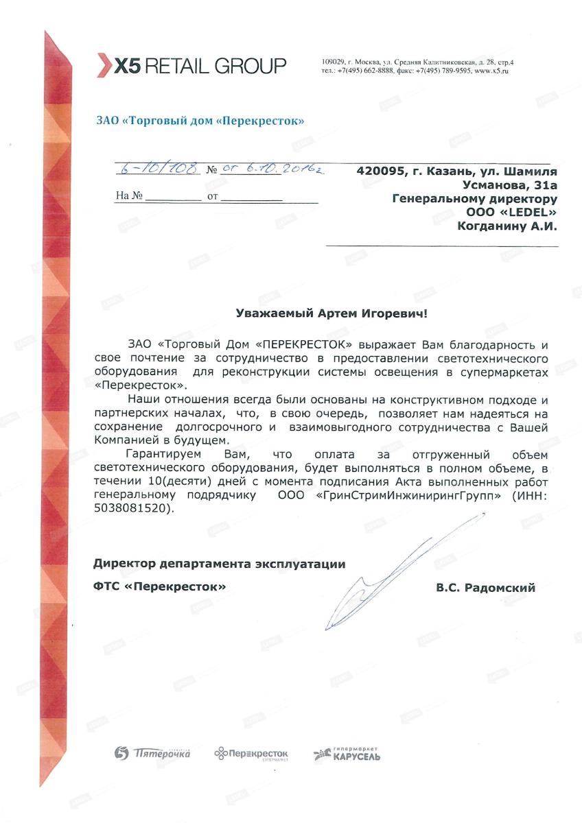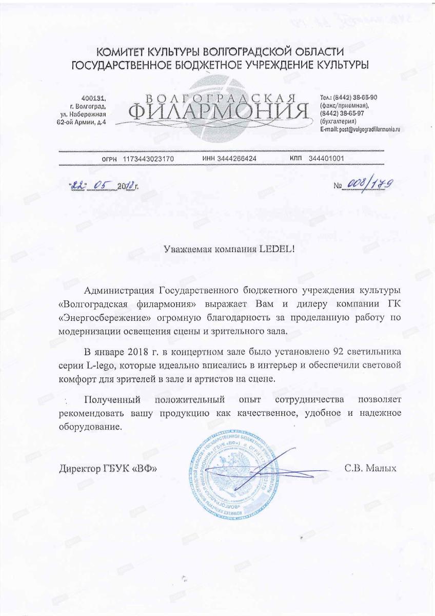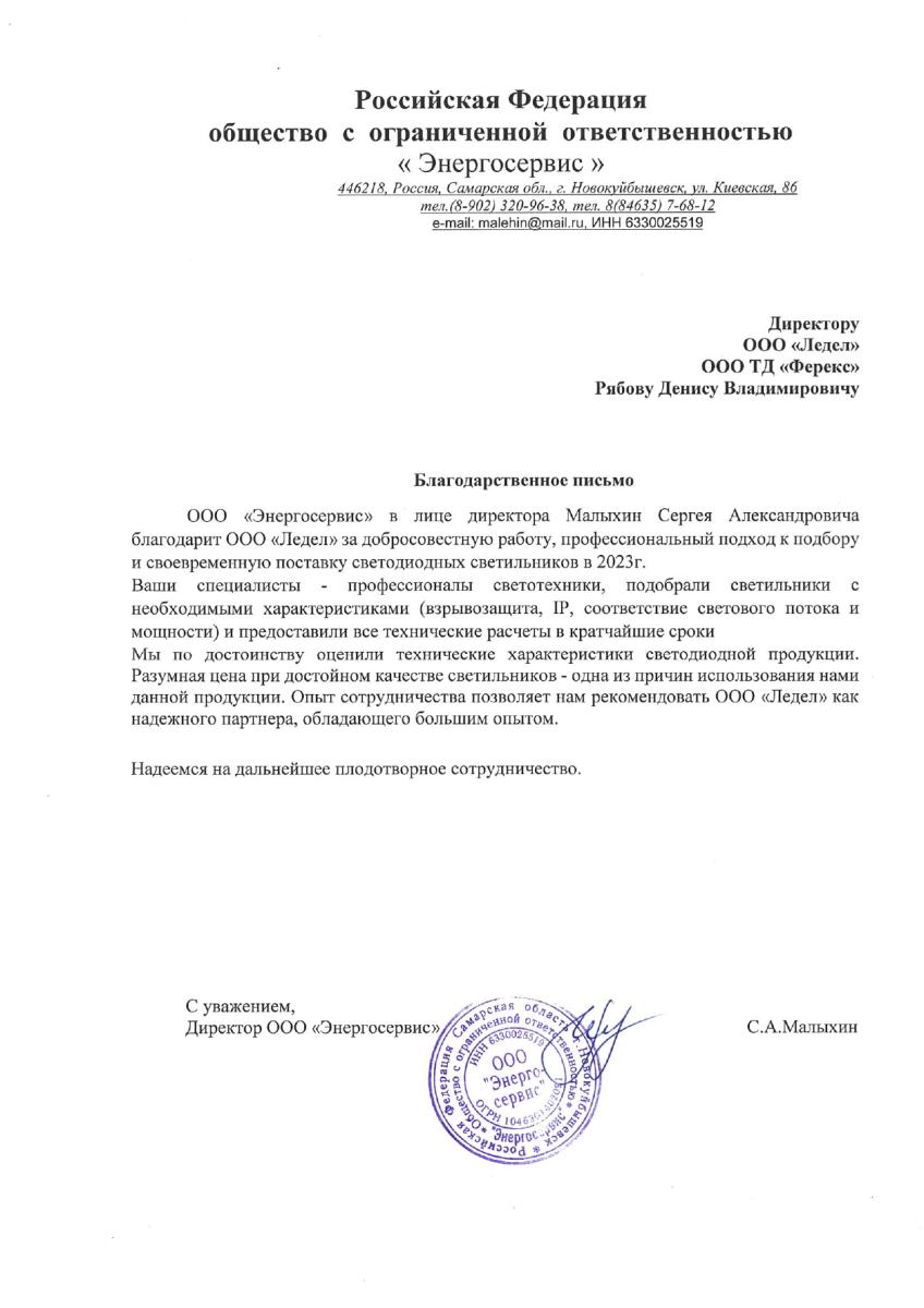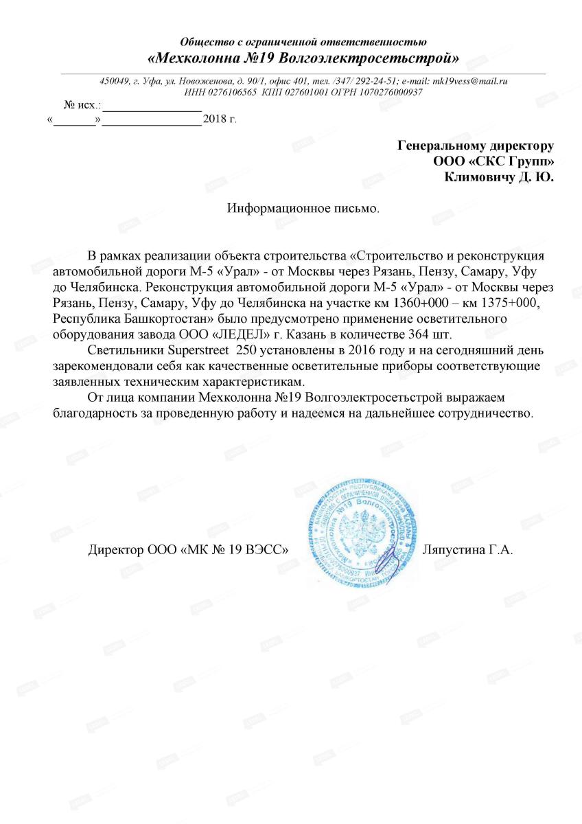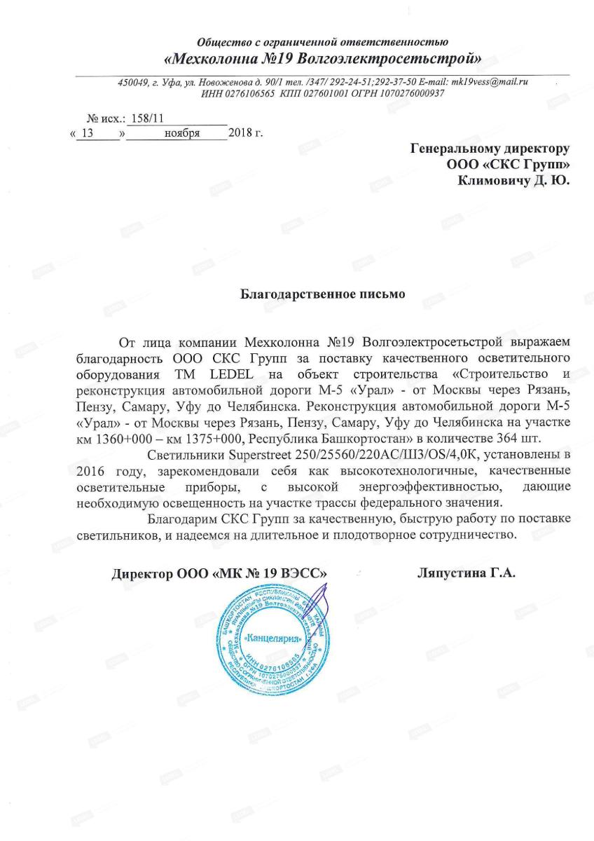 Благодарственное письмо от ООО "Мехколонна №19 Волгоэлектросетьстрой"